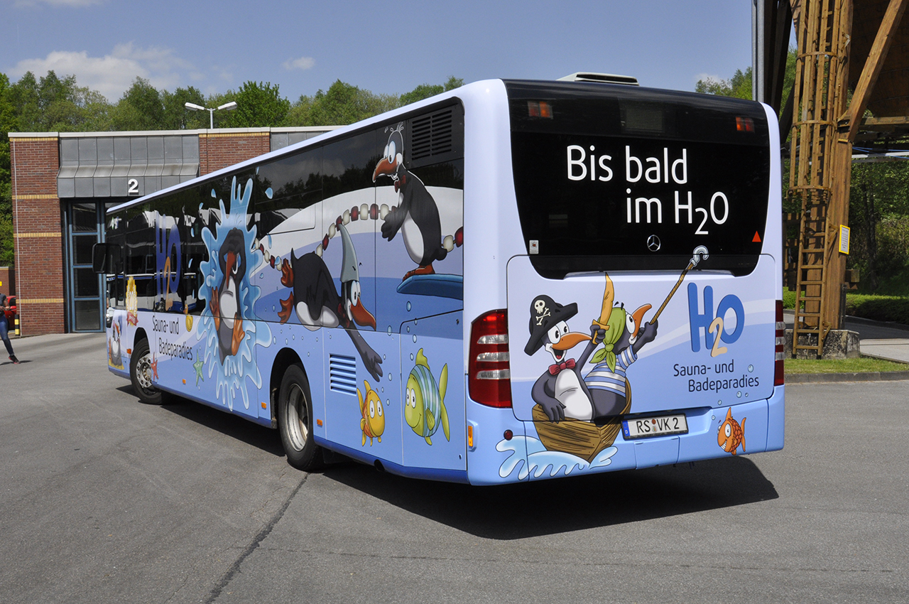 Und es war eine schöne Aufgabe – schließlich ist die letzte Busgestaltung für das H2O schon ziemlich lange her – und der alte Bus hatte schon einiges an Glanz verloren. Etwas Neues musste her, etwas Frisches, etwas Dynamisches, etwas Spektakuläres, etwas, das Aufsehen erregen würde, wenn man es sieht, etwas wonach sich Erwachsene und Kinder gleichermaßen umdrehen würden, kurz gesagt: etwas Einzigartiges!