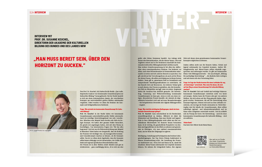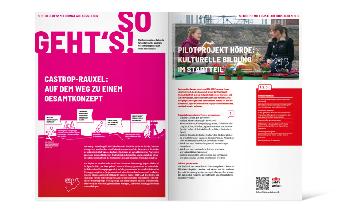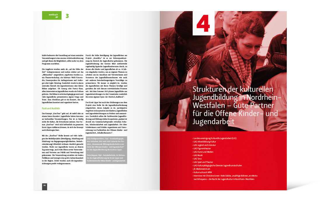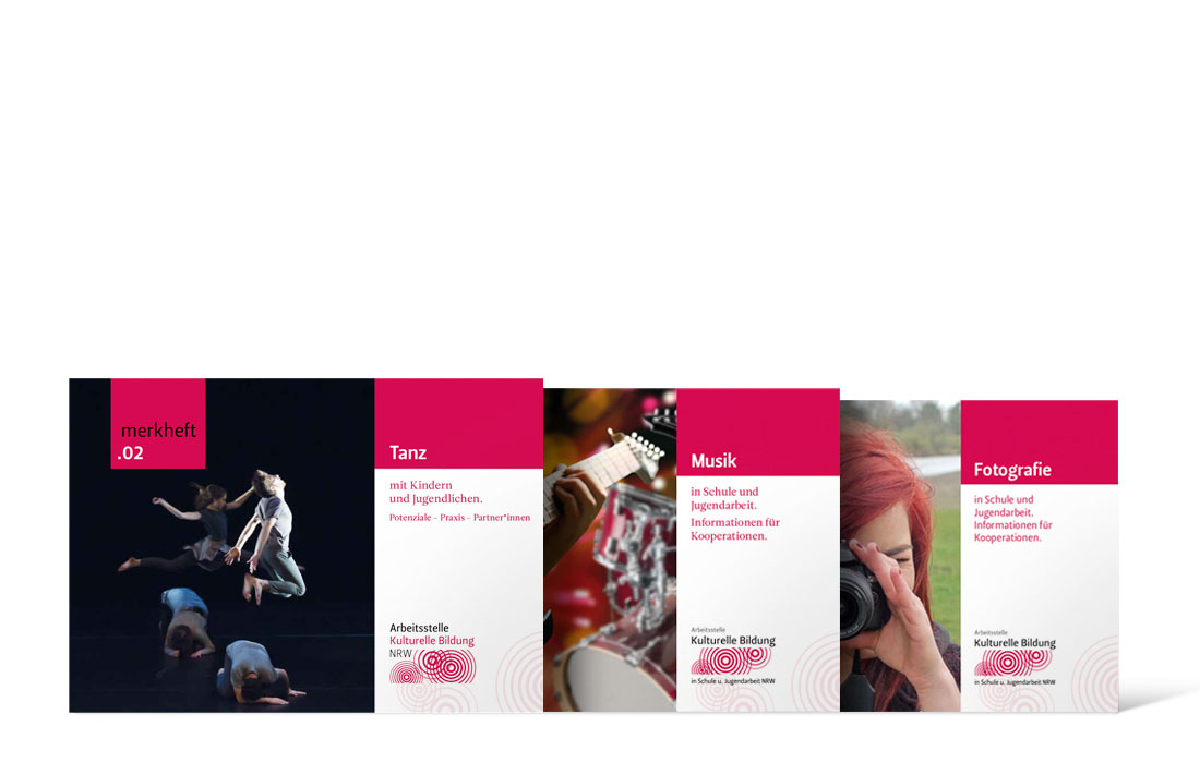 Im Laufe von sechs Jahren ist eine beeindruckende Schriftenreihe aus Werkbüchern und Merkheften entstanden, in denen Mitwirkende aus Schule und Jugendarbeit Anregungen, Hilfestellungen und Erfahrungsberichte nachlesen können, die die Vorbehalte gegen Projekte abbauen und Mut machen, Neues zu wagen. Flyer zu Veranstaltungsreihen und ein sehr umfassender, aktuell gepflegter Internetauftritt machen die Arbeitsstelle „Kulturelle Bildung in Schule und Jugendarbeit NRW“ zu einem echten Vorzeigekunden!