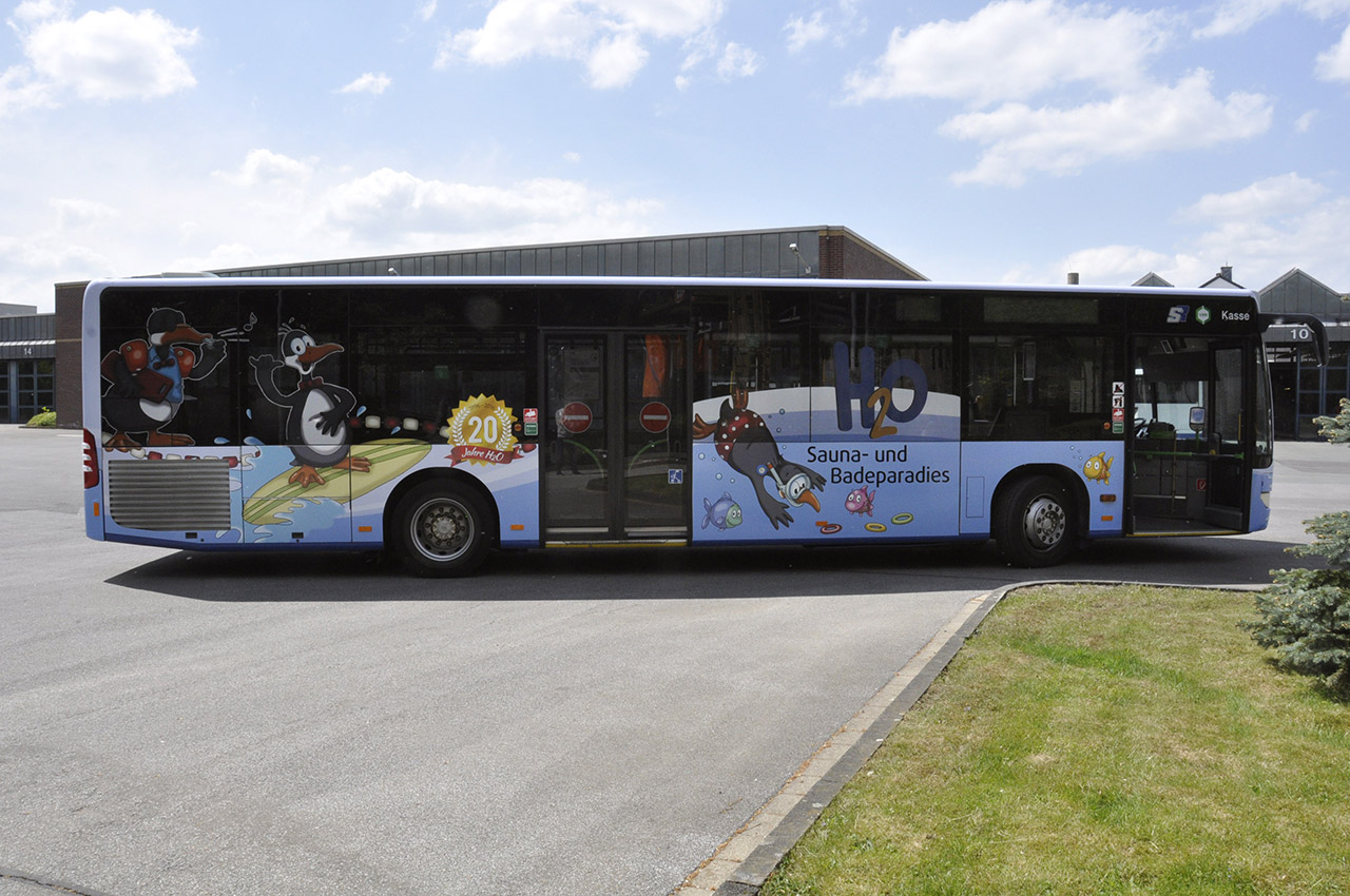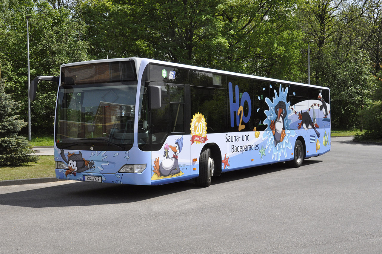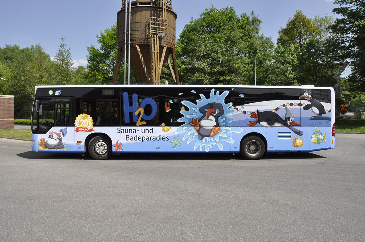 Und es war eine schöne Aufgabe – schließlich ist die letzte Busgestaltung für das H2O schon ziemlich lange her – und der alte Bus hatte schon einiges an Glanz verloren. Etwas Neues musste her, etwas Frisches, etwas Dynamisches, etwas Spektakuläres, etwas, das Aufsehen erregen würde, wenn man es sieht, etwas wonach sich Erwachsene und Kinder gleichermaßen umdrehen würden, kurz gesagt: etwas Einzigartiges!